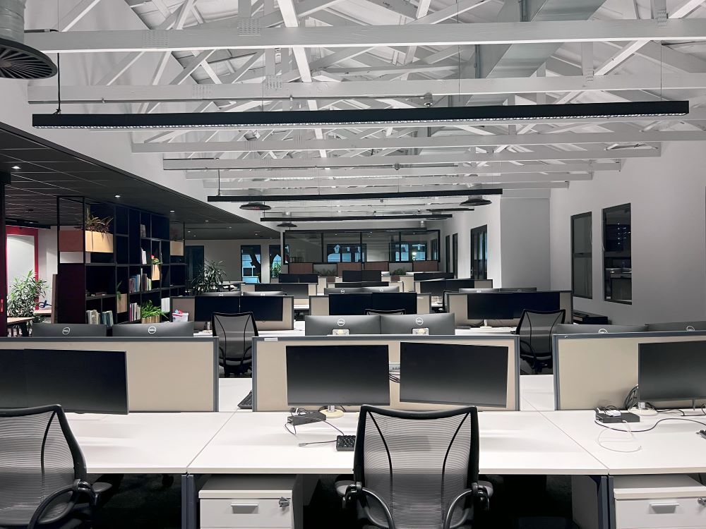 Ein wesentliches Merkmal dieses Projekts war die Verwendung von indirekter Beleuchtung, die so konzipiert wurde, dass sie für die Augen unauffällig ist und in den Büros eine einladende und produktive Umgebung schafft.